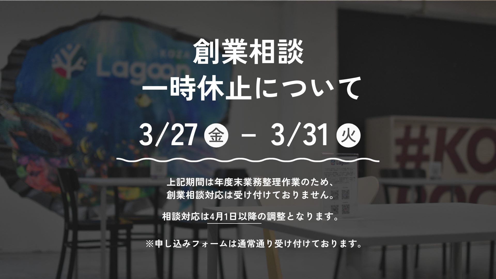 創業相談 一時休止のお知らせ
